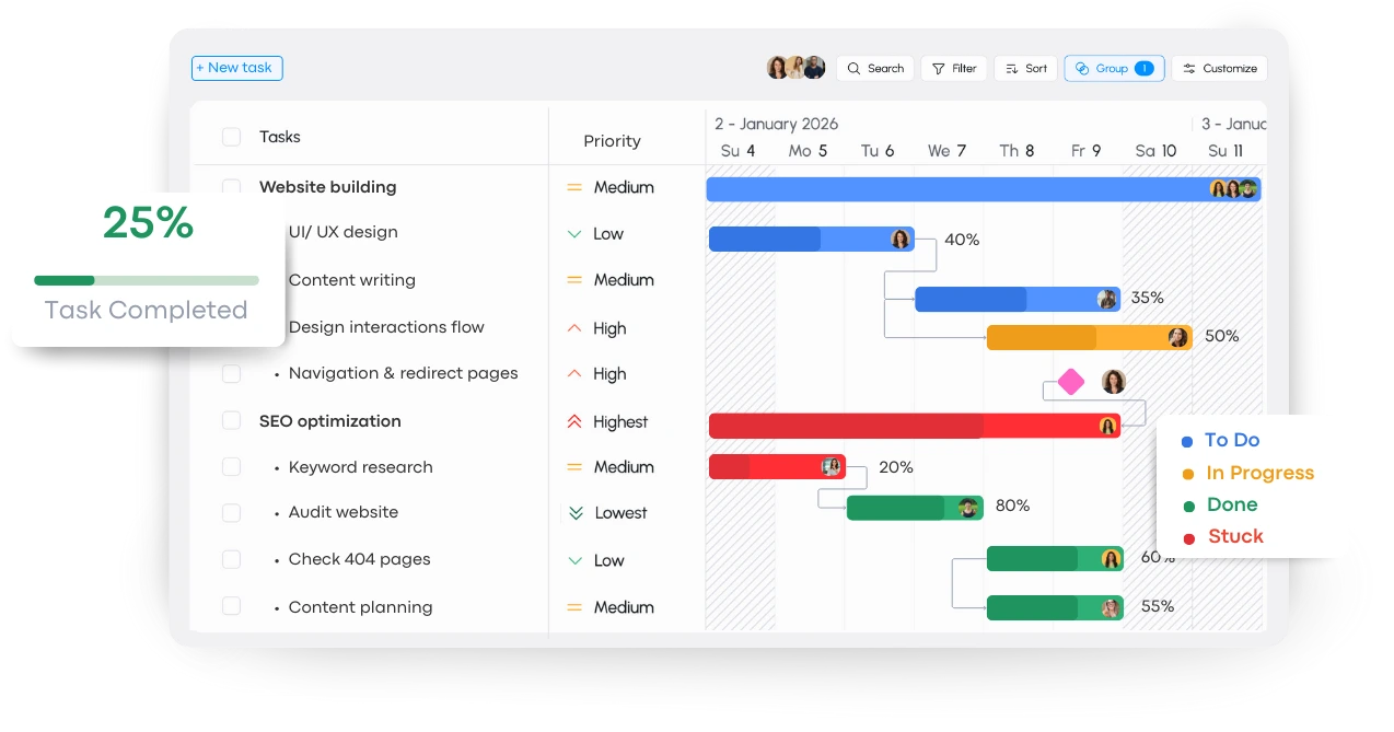 See what's on track or blocked instantly.