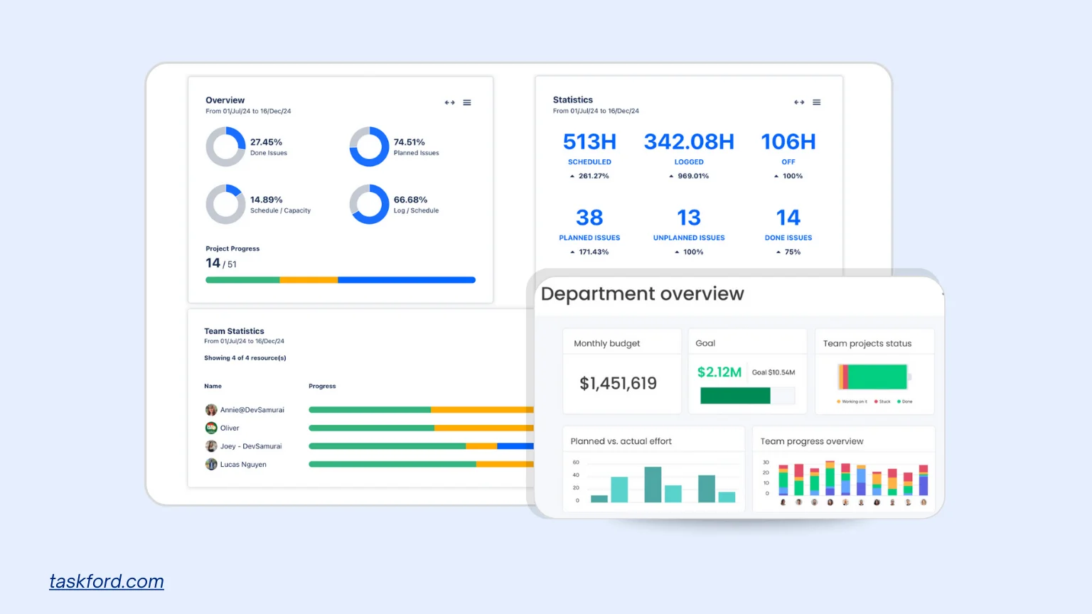 TaskFord is a comprehensive project management and resource planning platform with robust time tracking features tailored for busy professionals and freelancers. It provides reliable freelance time tracking integrated with project workflows, helping you log hours accurately and gain insights to boost productivity. Let’s explore its key features.