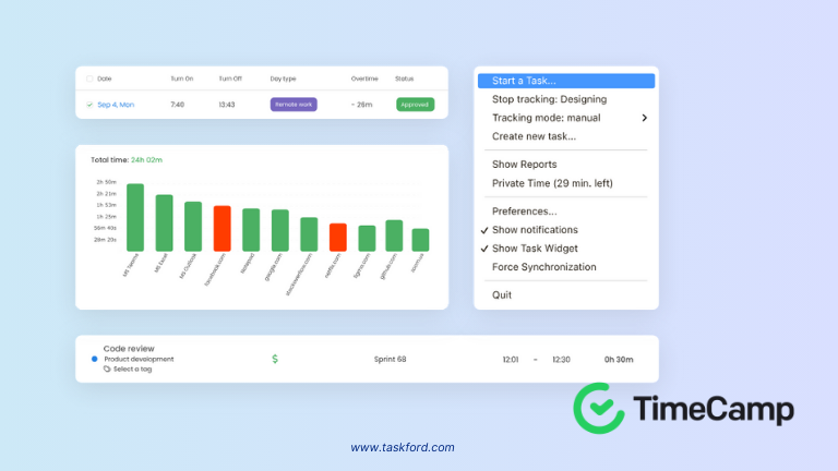 If you work remotely or have a flexible schedule, Timecamp’s automatic tracking ensures that all work time is logged without manual input. This is especially useful for freelancers who frequently switch between tasks. If managing remote employees, Hubstaff offers additional workforce monitoring features, including GPS tracking and automated payroll.