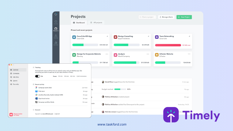 Timely is an AI-powered time tracking app that automatically categorizes time entries based on your activities. This feature reduces manual effort, making it ideal for freelancers managing multiple projects.