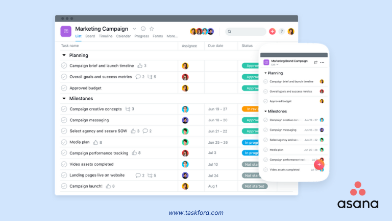 Asana and ClickUp help teams manage tasks and workflows. TaskFord helps organizations plan, align, and deliver strategic initiatives with greater visibility and control.