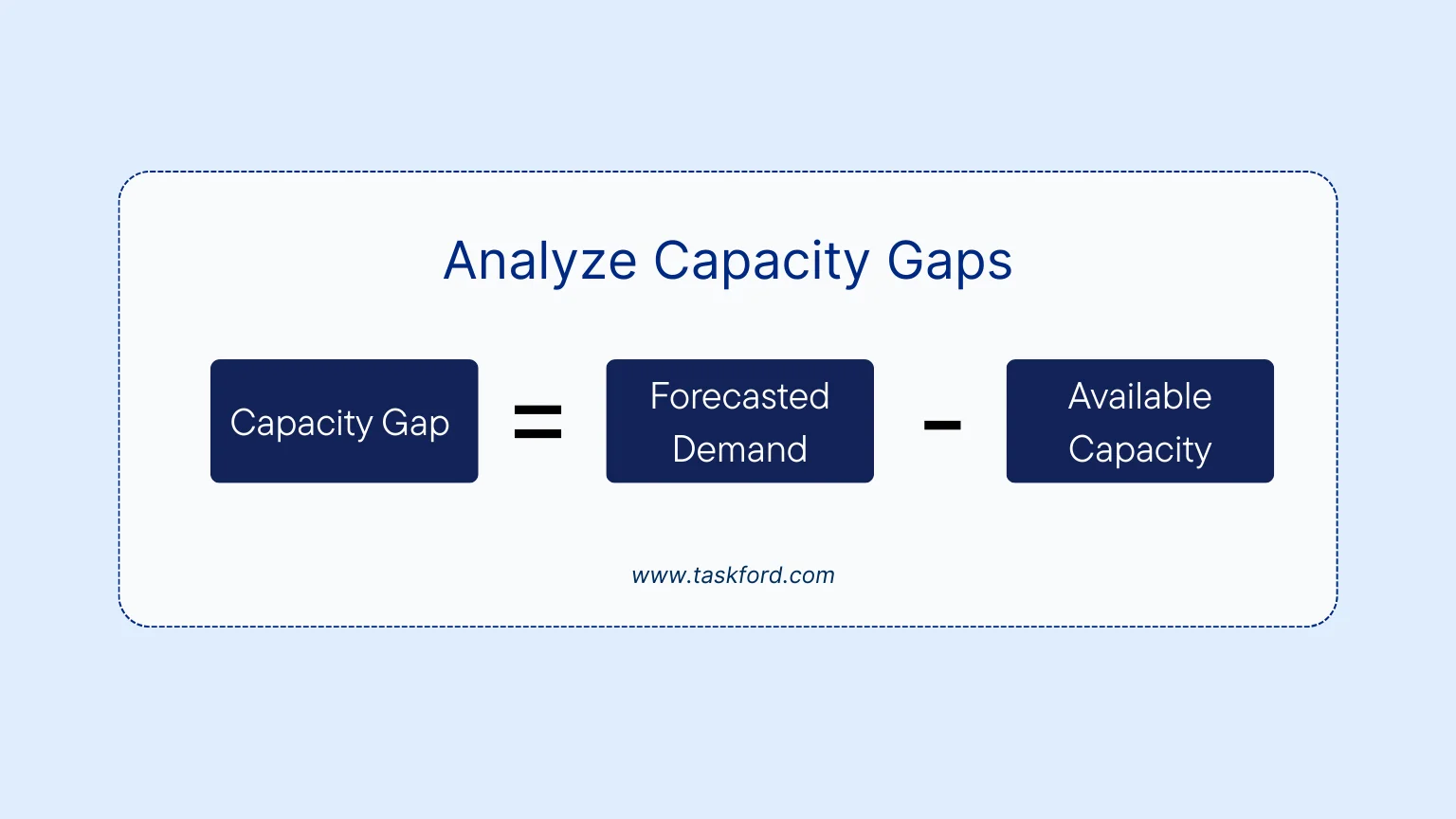 Once you know your available capacity, compare it with your forecasted demand to determine the capacity gap: