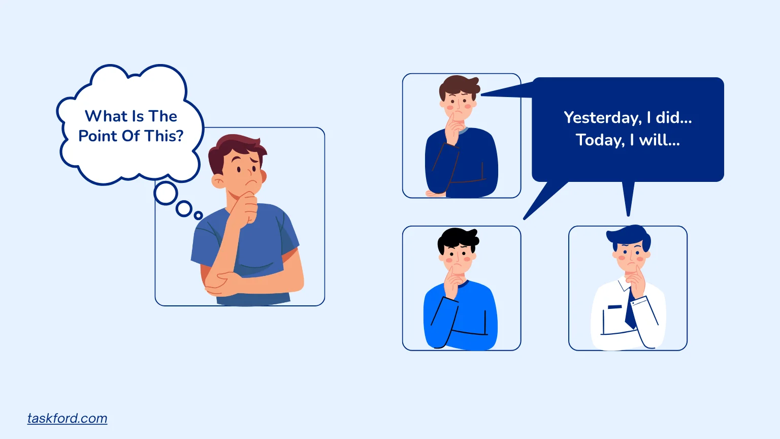 5. Information feels redundant: Most updates repeat what is already visible in tools like Kanban boards or task trackers. Instead of adding useful context such as risks or dependencies, the stand-up simply mirrors existing data.