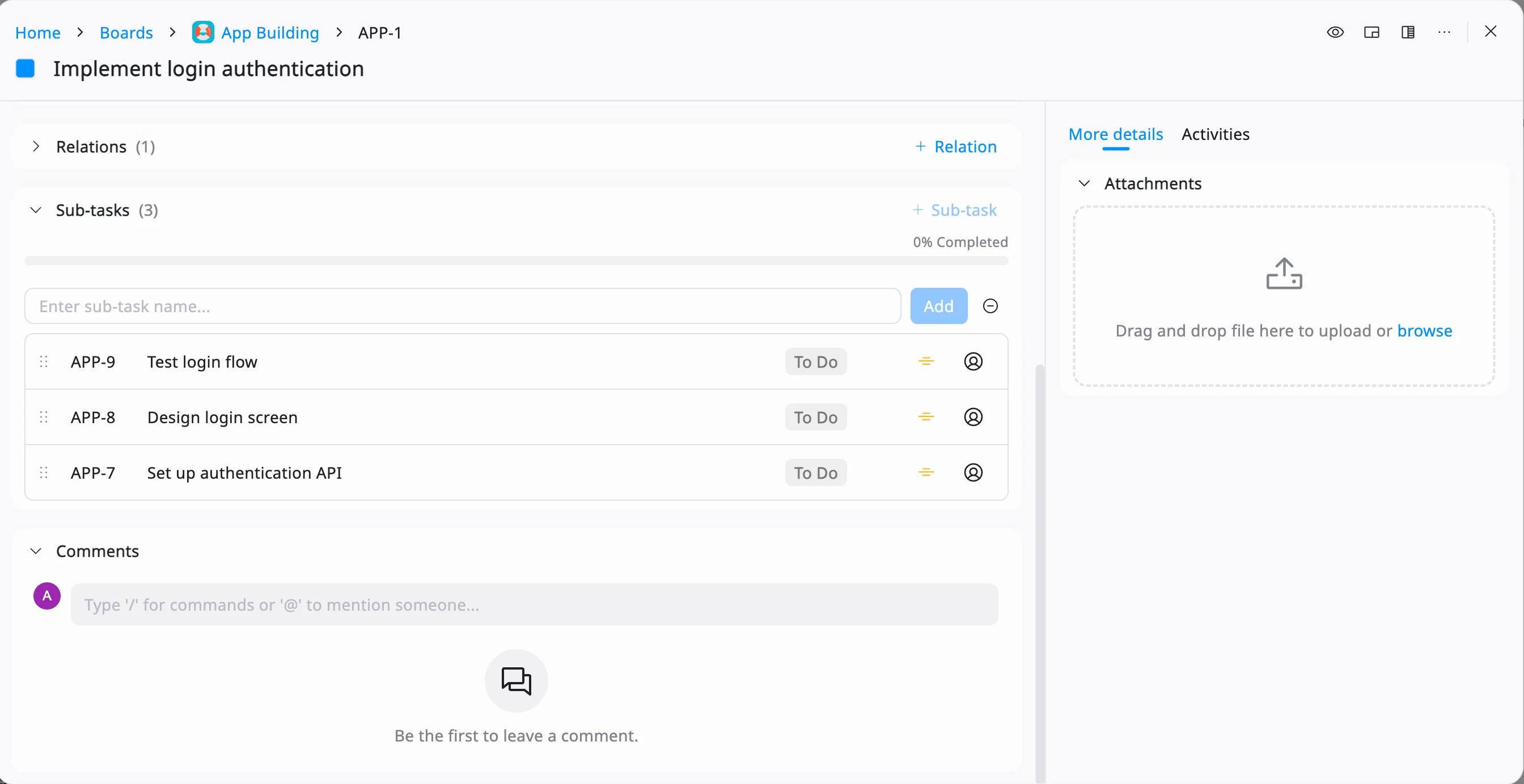 Once you have a shortlist, go through each task as a team. If something feels too big or unclear, break it down on the spot by clicking on the tickets on Kanban Board and adding their subtasks.