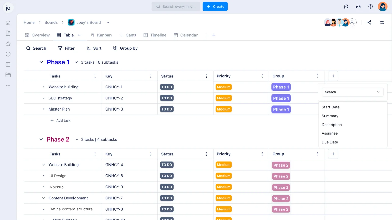 A table view offers a clear overview of all your tasks, allowing you to see key details like due dates, priorities, and assignees in one place. For teams working on multiple projects, having this level of organization helps streamline workflows and improve communication.