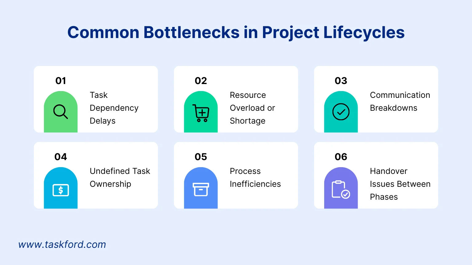 Below are some of the most common bottlenecks found during different stages of the project lifecycle.