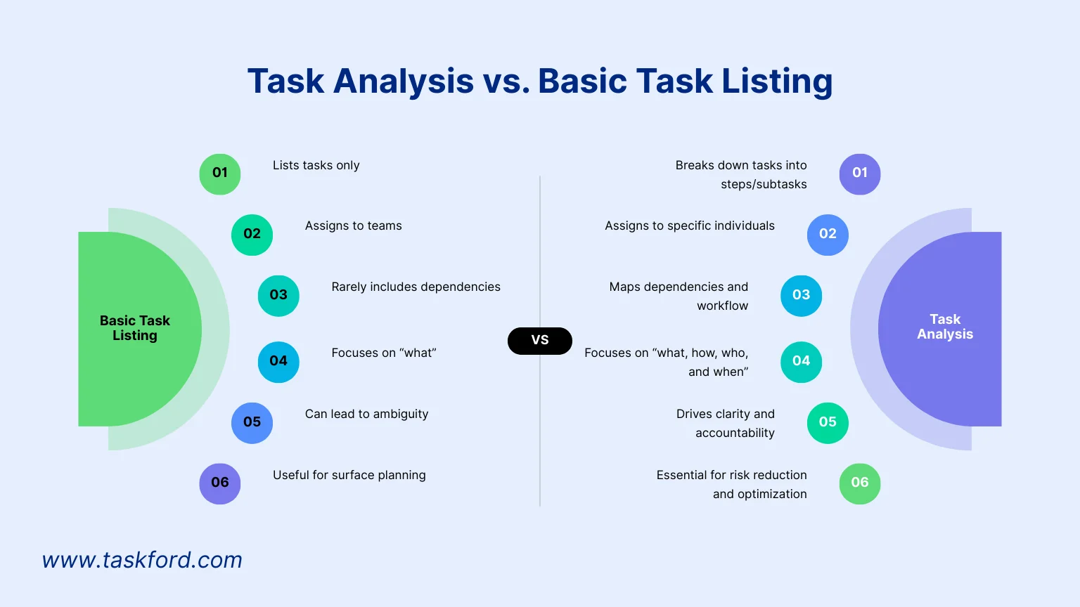 Many project managers create task lists, but a basic task list only outlines what needs to be done, often without insight into execution. Task analysis, on the other hand, evaluates each task at a deeper operational level, helping improve performance and accuracy.