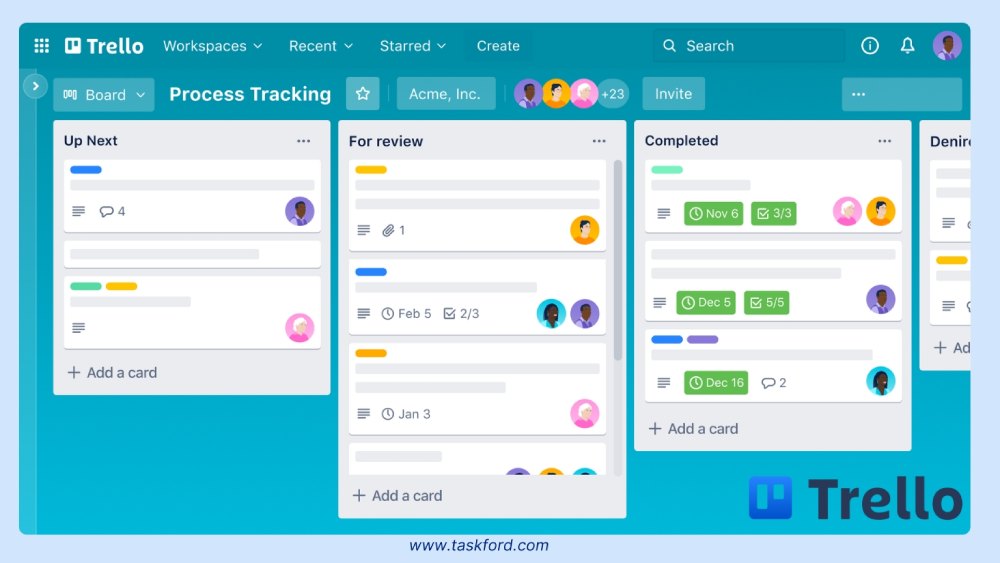 Trello is a visual project management tool built on a Kanban board system, ideal for small teams or simple workflows. Its drag-and-drop interface makes task organization intuitive, allowing users to create boards for projects, lists for stages (e.g., “To-Do,” “In Progress”), and cards for tasks.