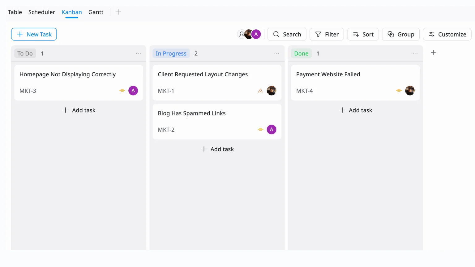 While traditional issue logs are often maintained as tables or spreadsheets, many modern teams use Kanban boards as an alternative. A Kanban board turns issue tracking into a visual workflow. Instead of rows in a table, issues are shown as cards that move across columns such as:
