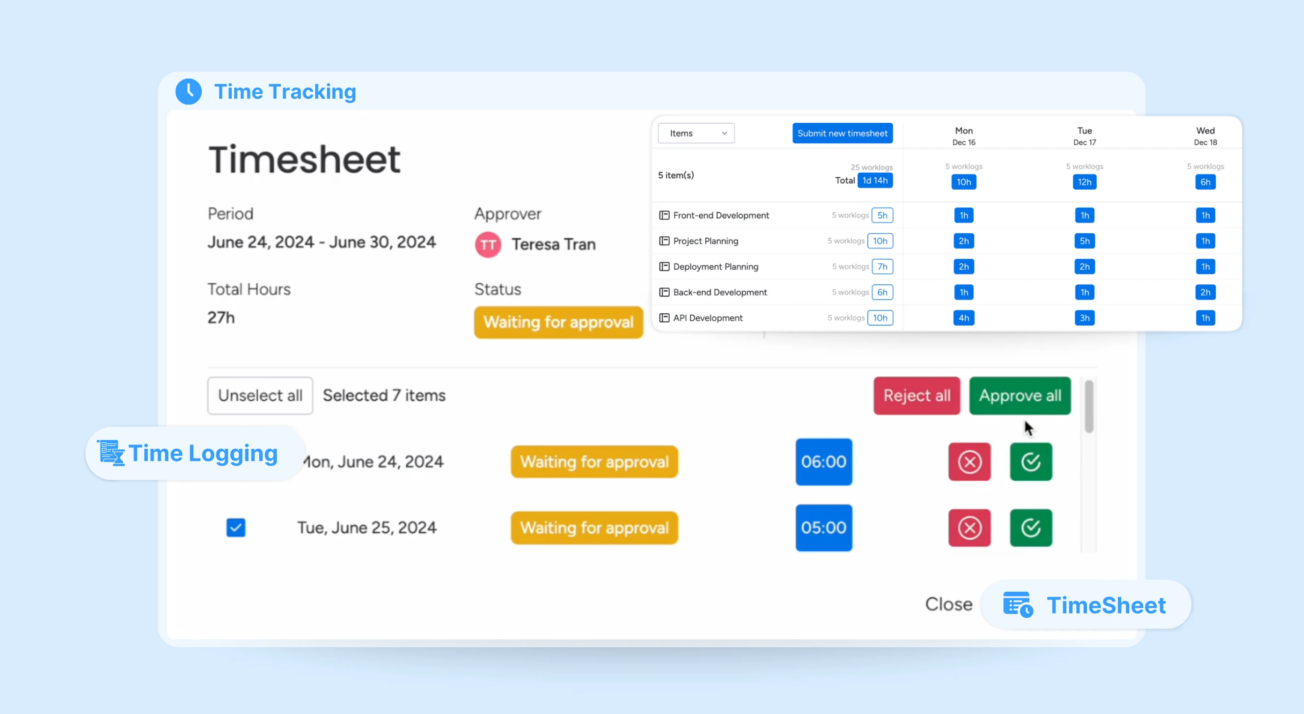 Compare scheduled vs logged hours to spot gaps and inefficiencies.